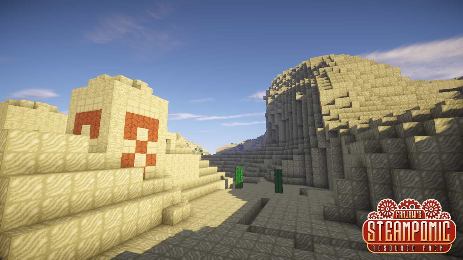 Steampomic resource pack is a Minecraft pack by Fanjawi that mixes two styles that rarely meet in one set. It takes steampunk ideas such as brass and iron parts, gears, pipes, and an alternate industrial mood, then frames them with a comic look. You see that comic influence in clean shapes, strong outlines, and a stylized finish that avoids gritty realism. In other words, it can be described as both steampunk themed and comic styled, and that pairing defines the pack more than any single block. Steampomic comes at 32x resolution. That gives you more detail than vanilla 16x while staying lighter than very high resolution packs that can stress your PC’s memory.