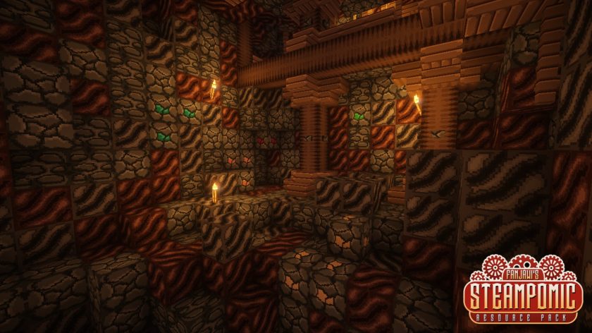 Many steampunk packs lean hard into dark rust, but this one keeps the style simple enough for regular play. You still spot important blocks pretty fast while mining or building, and the outlines help blocks stand out in some subtle areas. With this pack you can build your own Victorian towns or railway depots, or maybe even airship docks. Unfortunately, the Steampomic texture pack stopped being updated after version 1.8.x and will probably not be updated again, but if for some reason you are currently playing on older versions of Minecraft, you might want to give this pack a try – it’s unique and one of a kind, especially back in the old days when this was something completely new.